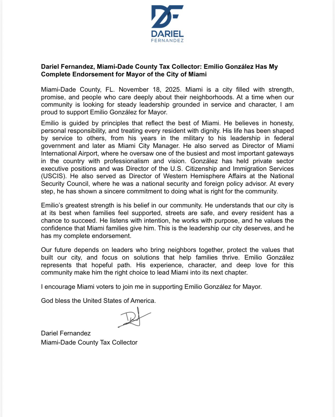 The 2025 election cycle was marred by early controversy. In June 2025, Miami city commissioners passed an ordinance that would change the election dates from odd-numbered to even-numbered years, citing voter turnout and the financial cost of elections as key factors. This ordinance would suspend the November 2025 elections until November 2026, giving incumbents an extra year in office. One of the candidates, Emilio T. Gonzalez, filed a lawsuit challenging the Commission's ordinance. Both the 11th Judicial Circuit and Third District Court of Appeal ruled in Gonzalez's favor, finding that the ordinance violated the Florida Constitution, the Miami-Dade County Home Rule Charter, and the City of Miami Charter. [4] [5] [6] The City of Miami soon after filed a motion to obtain a rehearing en banc . [7] This means that the entire Third District Court would hear the case as opposed to the customary three-judge panel.