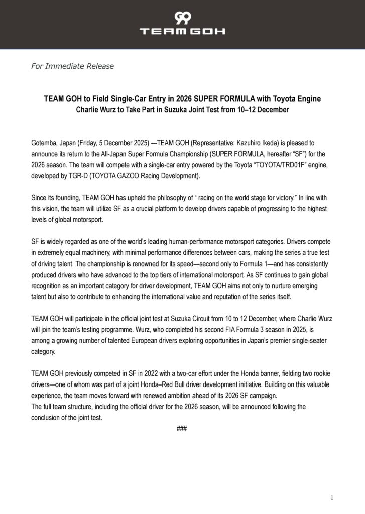 | 9 | Fuji Speedway | Oyama, Shizuoka | 10 October | Formula Regional Japanese Championship | |