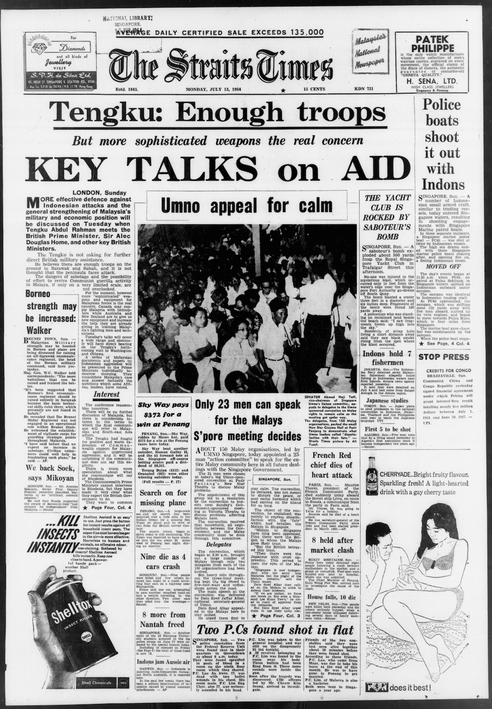Lee asserted that following the 1964 elections, UMNO activists launched a three-month campaign accusing the PAP of oppressing the Malays in Singapore. [20] On 12 July 1964, a 23-man "action delegation" was appointed to engage with the Singapore Government during an UMNO-sponsored convention of 150 Malay organisations. The event was organised in response to a planned Singapore Government convention on issues affecting the Malay community. UMNO secretary-general Dato Syed Jaafar Albar insisted that UMNO was not a "racial party", citing its cooperation with the MCA and the Malaysian Indian Congress (MIC). He also argued that the Central Government had been "too soft" on Lee, accused him of being a "champion of the Chinese", and urged him to consult this new delegation as the “true representatives” of the Malay community instead of the organisations he had invited. [21] Lau believed that this campaign aimed to mobilise the Malay community to intimidate the PAP into submission, weaken Malay support for the party, allow UMNO to regain its electoral stronghold in Singapore's Malay constituencies, and force the PAP to function as a communal party, relying solely on its Chinese support once Malay backing was lost. [22]