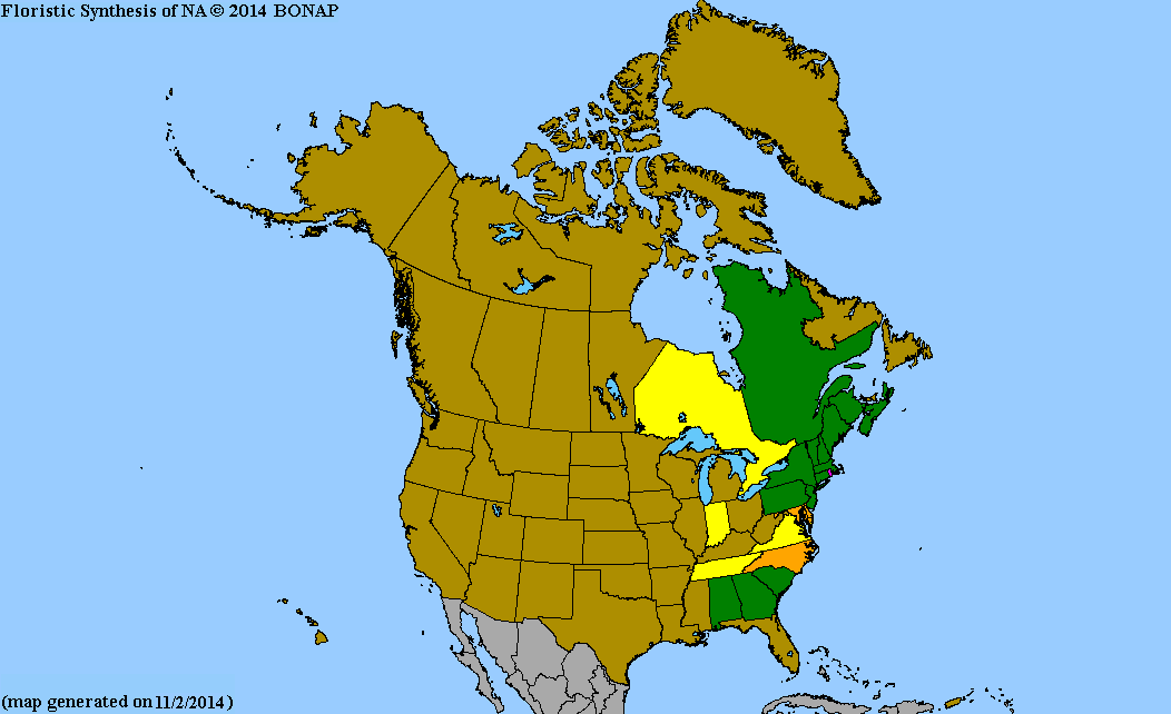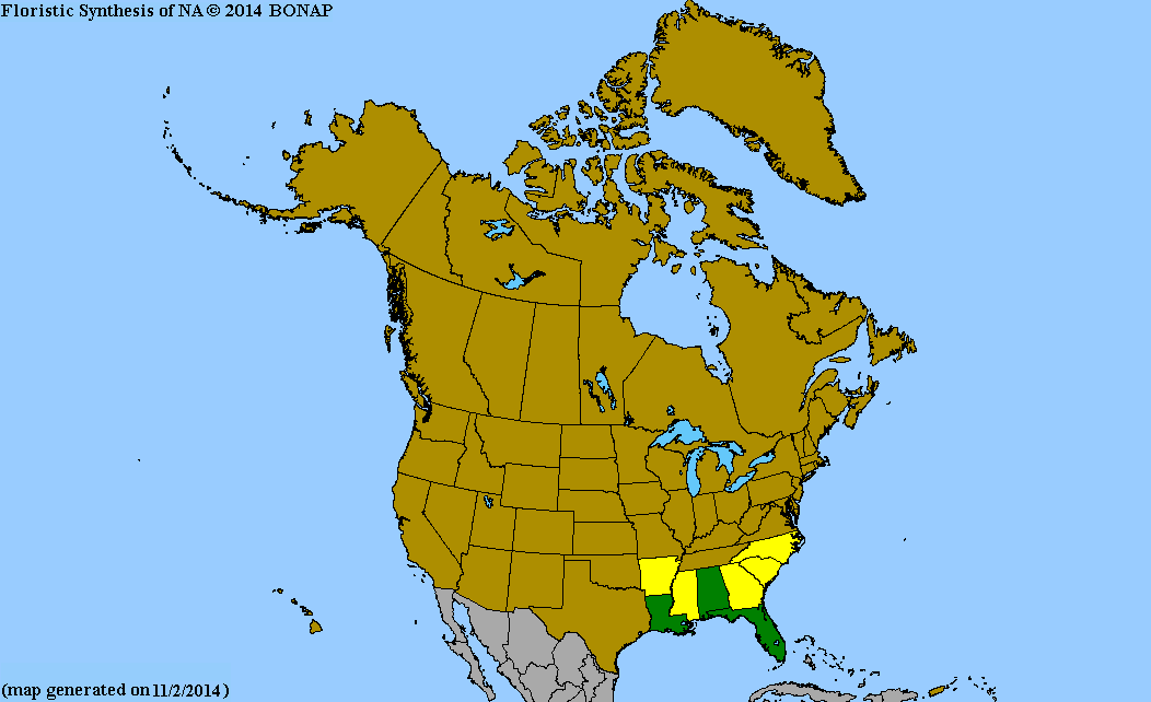 Plant specimens have been collected as far south as the coastal plain of Alabama, [28] but some authorities claim the species has not naturalized there. [8] Reports from the southern U.S. states of Georgia, South Carolina, and North Carolina may actually be based on Cyperus lecontei , not Cyperus dentatus.