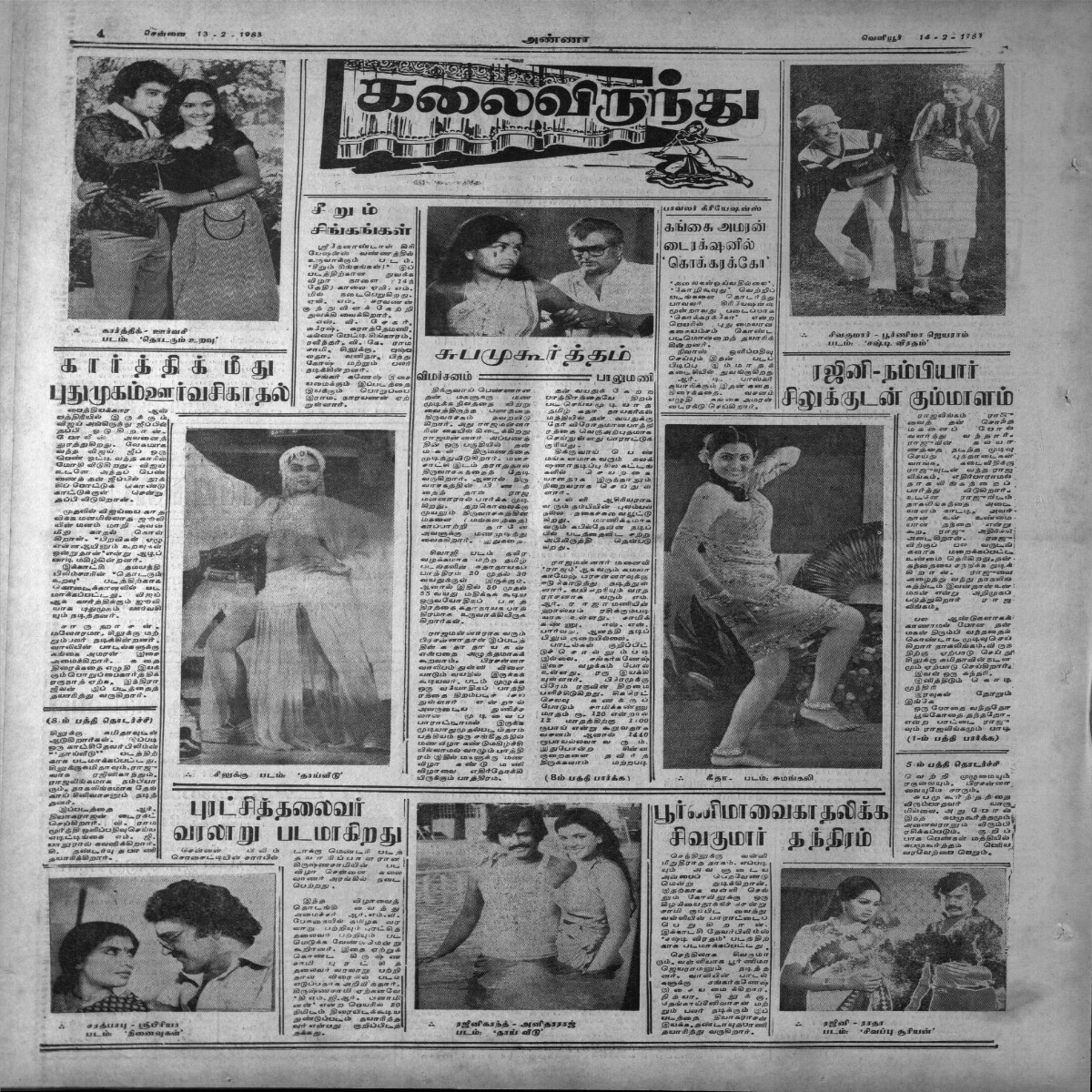 Jayamanmadhan of Kalki praised the acting of Smitha, Ilaiyaraaja's music and song picturisations but felt Amaran seemed to have not cared about the plot and just went with the flow. [10] Balumani of Anna praised the acting, Ilaiyaraaja's music, Nivas's cinematography and praised Amaran for extracting good work from all actors and technicians. [11]