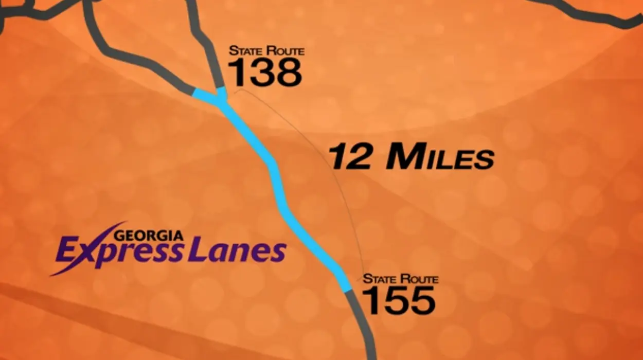 | 12.0 | 19.3 | I-675 – Stockbridge | SR 155 – Blacksville | $0.50 minimum to ~$0.90/mi | Reversible lanes | |