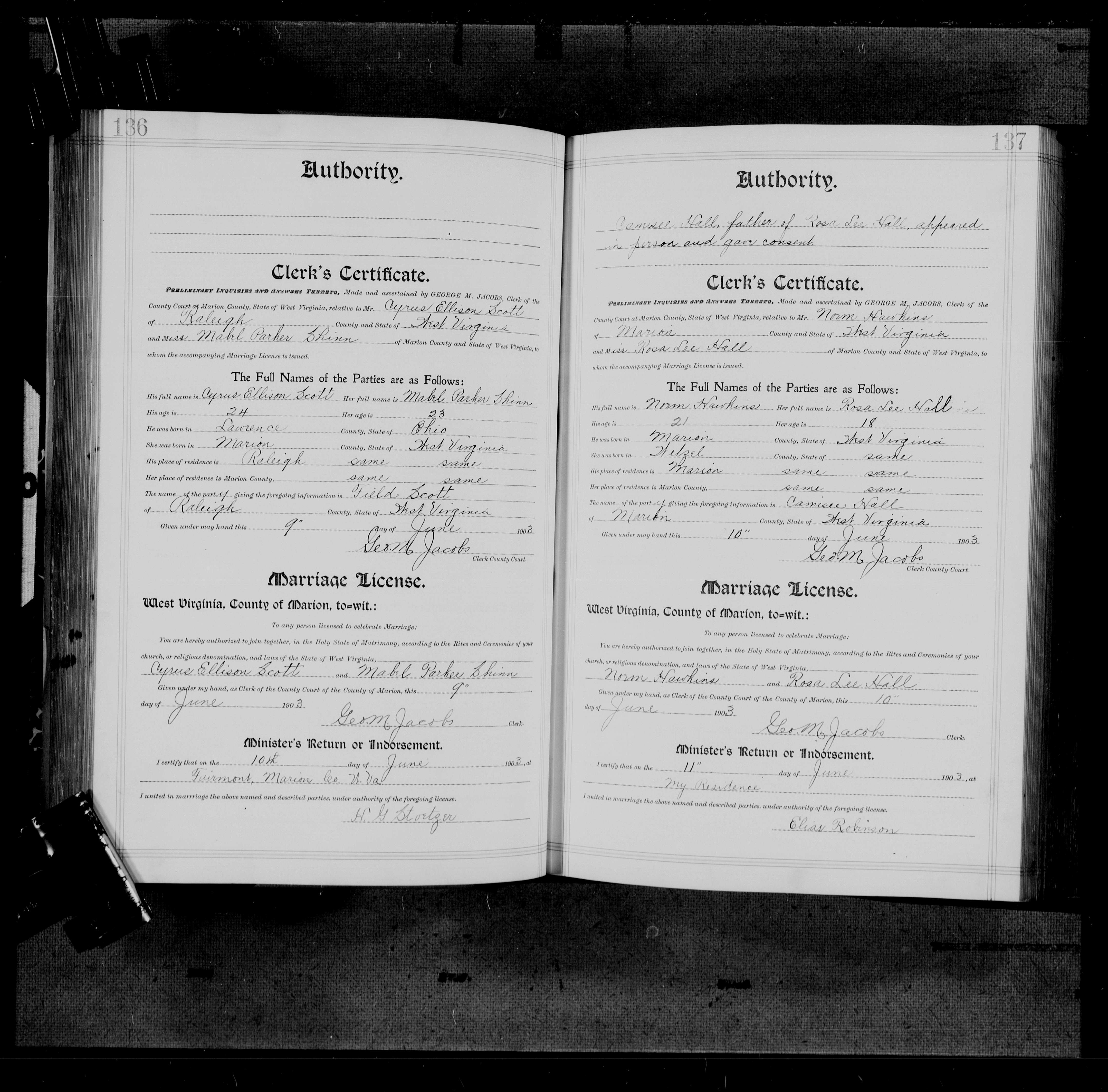 Books and newspaper articles have erroneously cited Cyrus Hall Scott as the husband of Mabel Shinn Scott and source of the community name. Cyrus H. Scott was married to Fannie I. Logan and, after Fannie’s death, to her sister Emma Crawford Logan. [7]