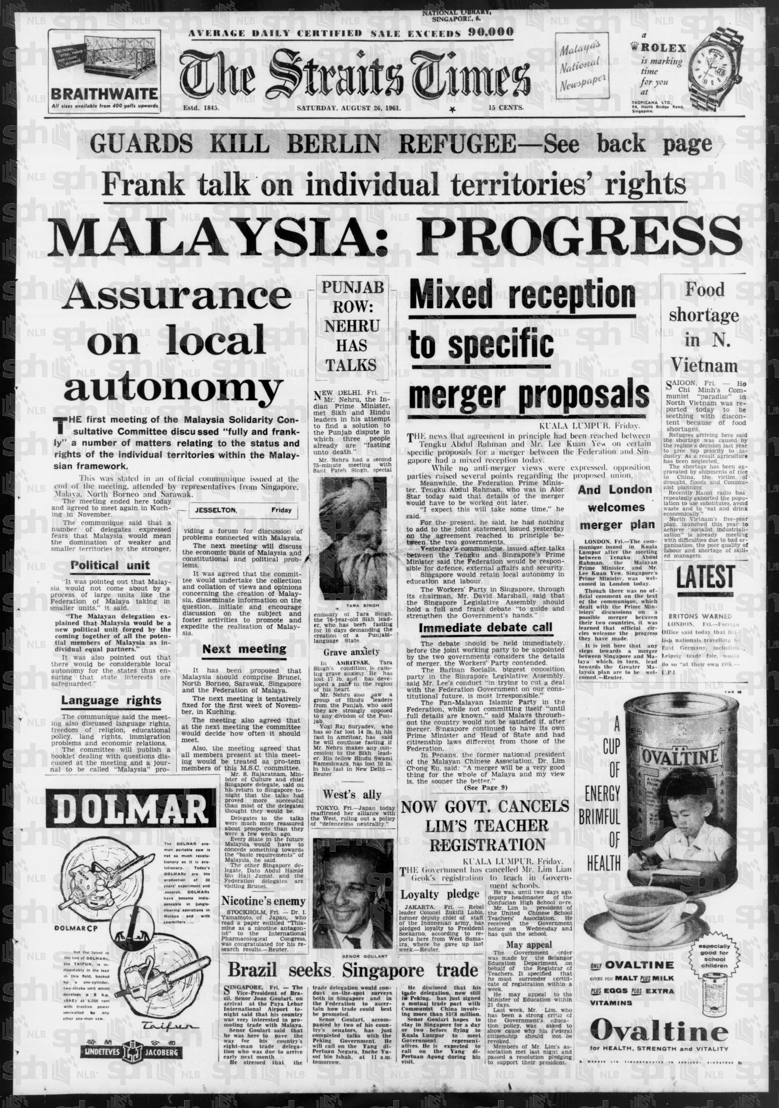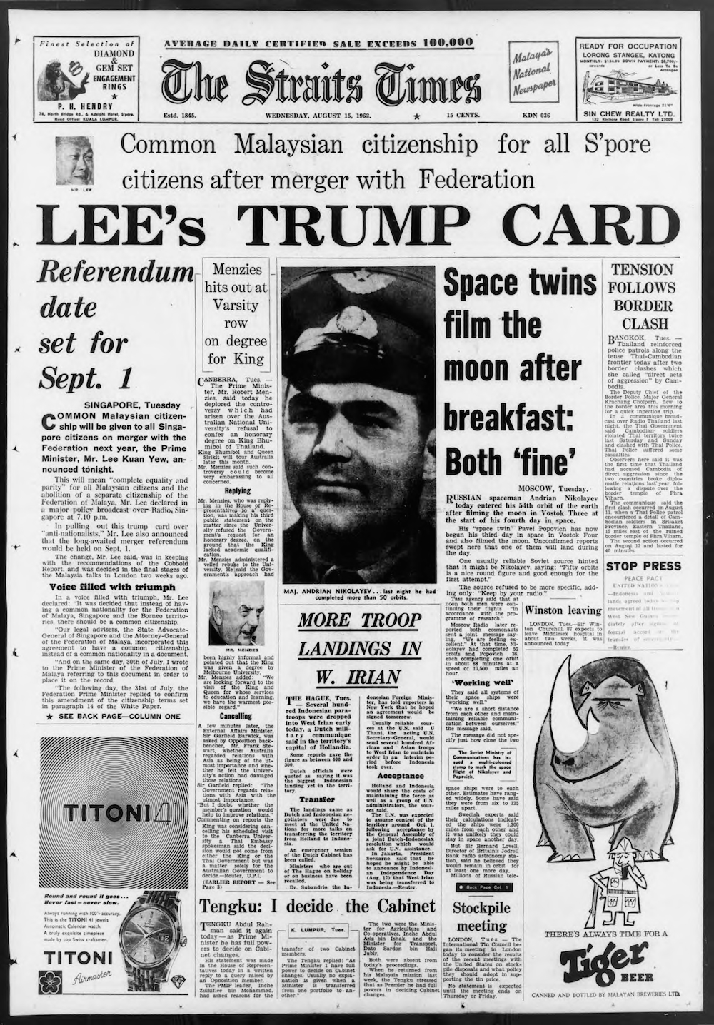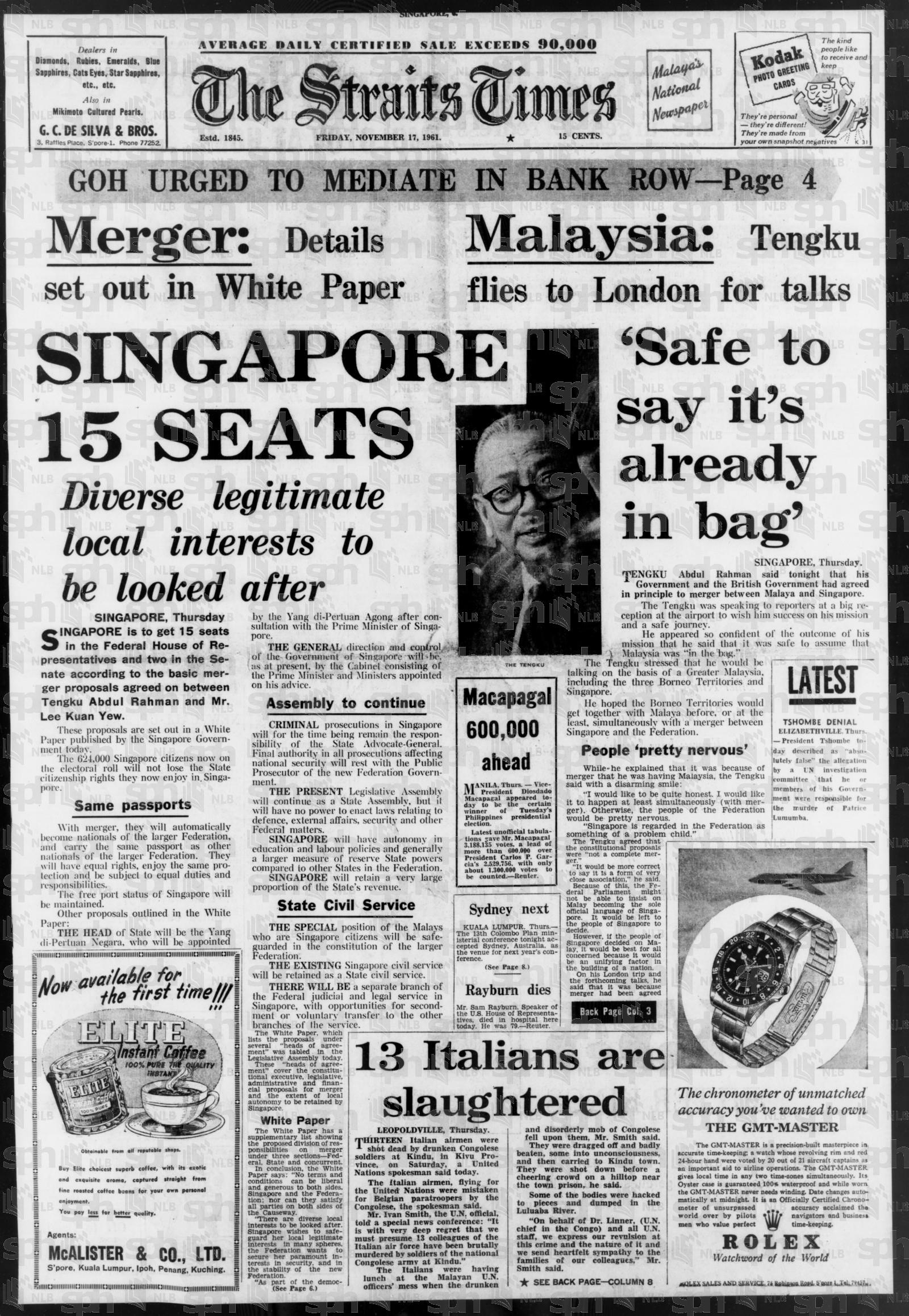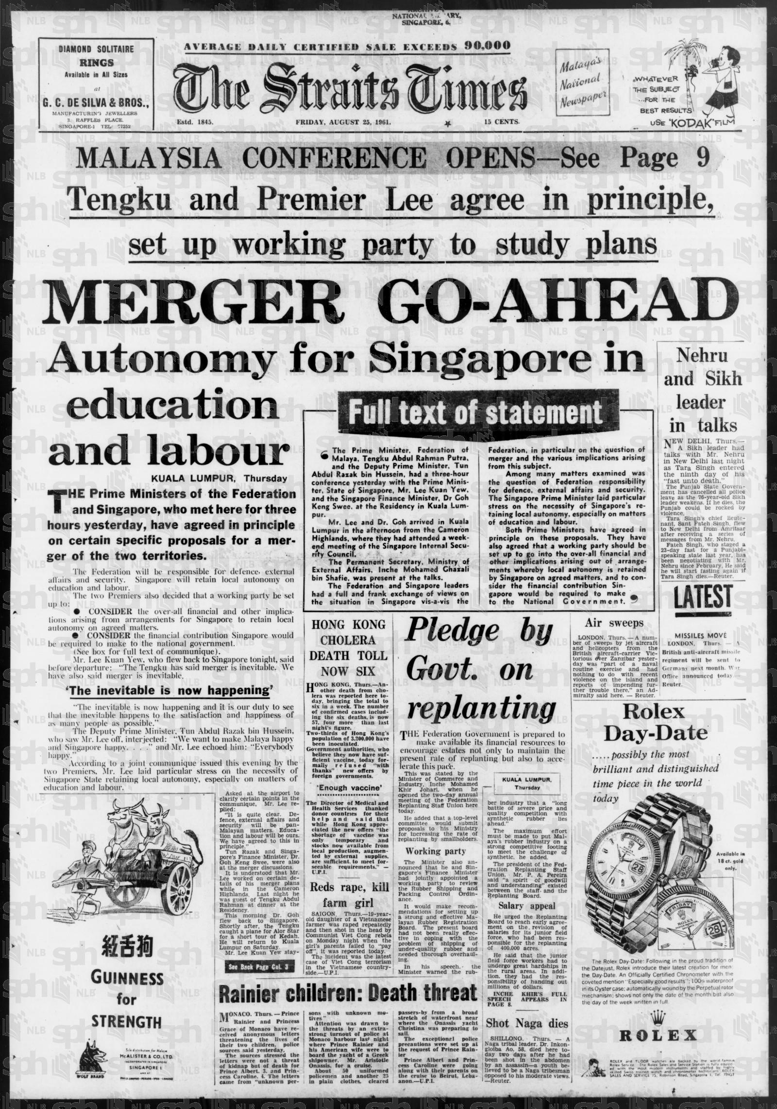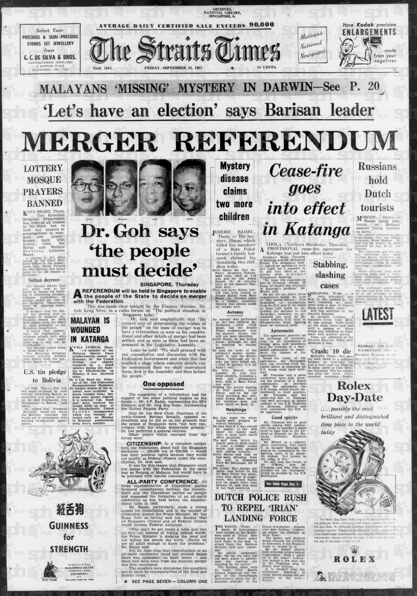 112. "Unity: Now – Forward". The Straits Times. 29 September 1963. pp. 1, 2 . Retrieved 11 December 2025.