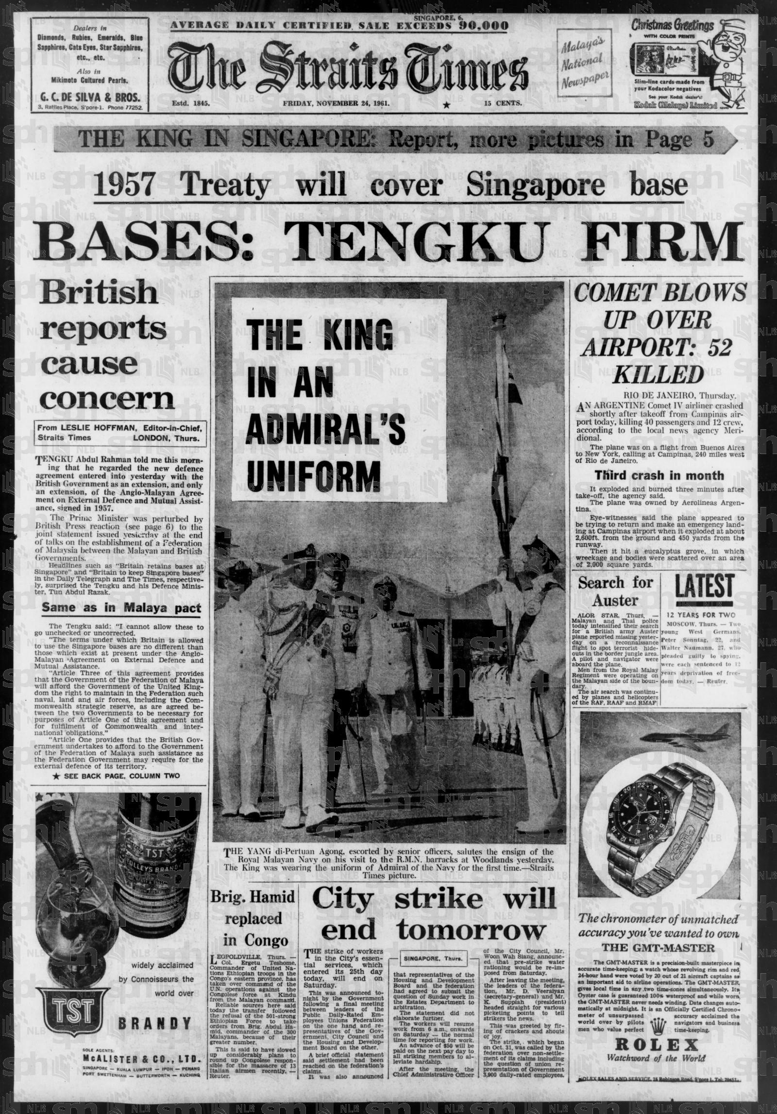 133. Hoffman, Leslie (24 November 1961). "Bases: Tengku Firm". The Straits Times. p. 1. Retrieved 20 December 2025.