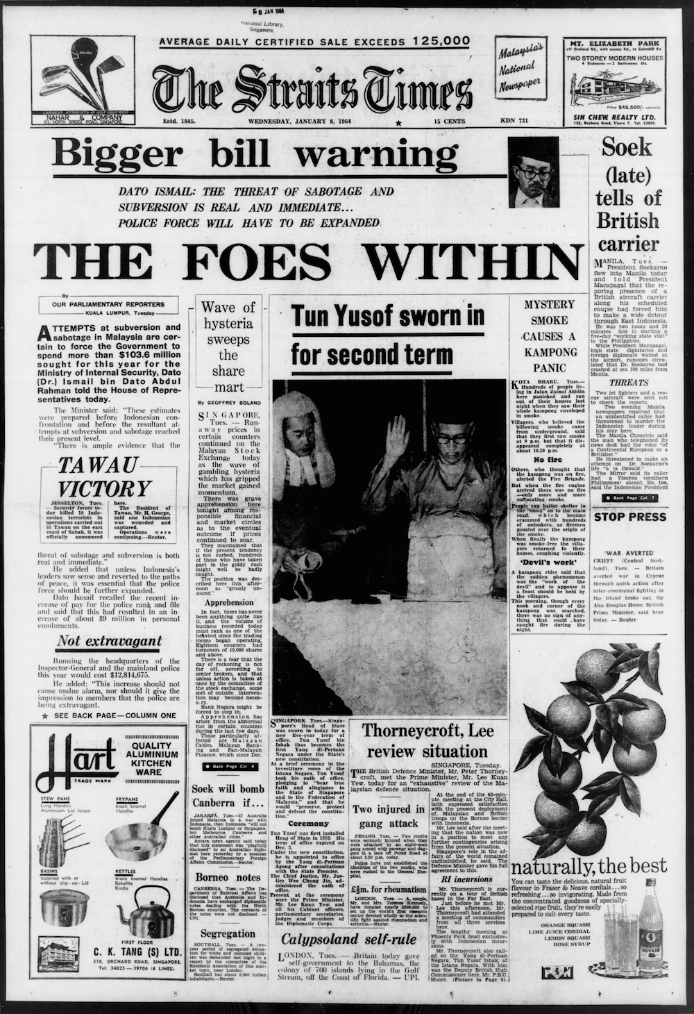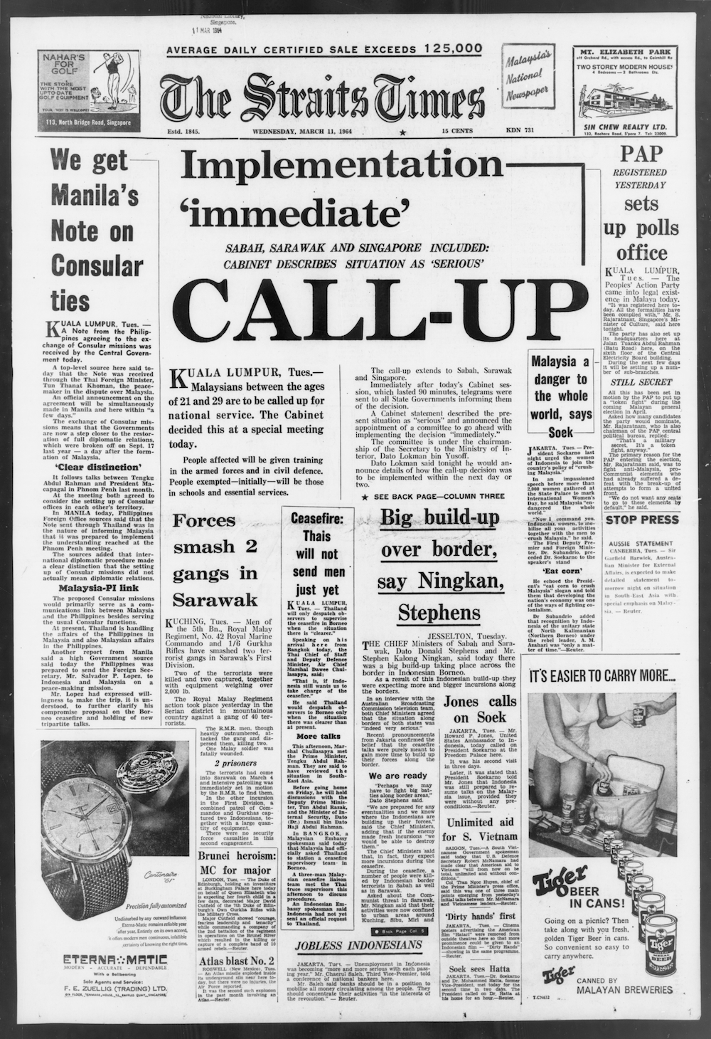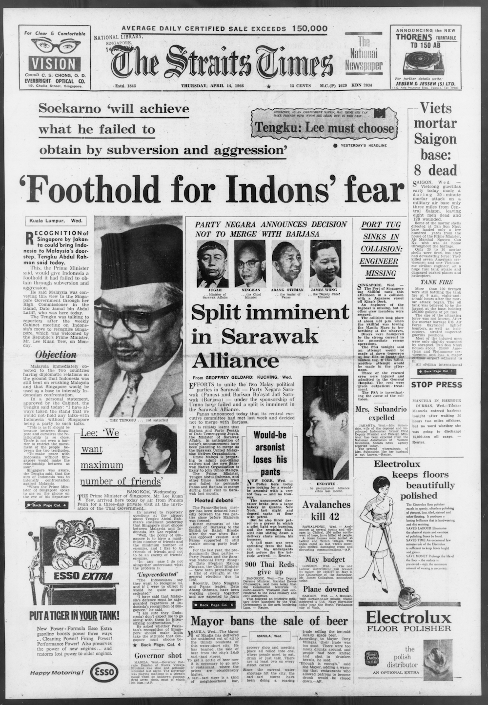 201. "'Foothold for Indos' fear". The Straits Times. 14 April 1966. p. 1.