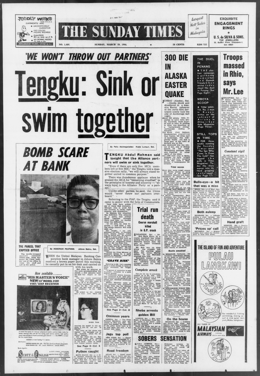 115. Abisheganden, Felix (29 March 1964). "Tengku: Sink or Swim Together". The Straits Times. p. 1. Retrieved 16 December 2025.