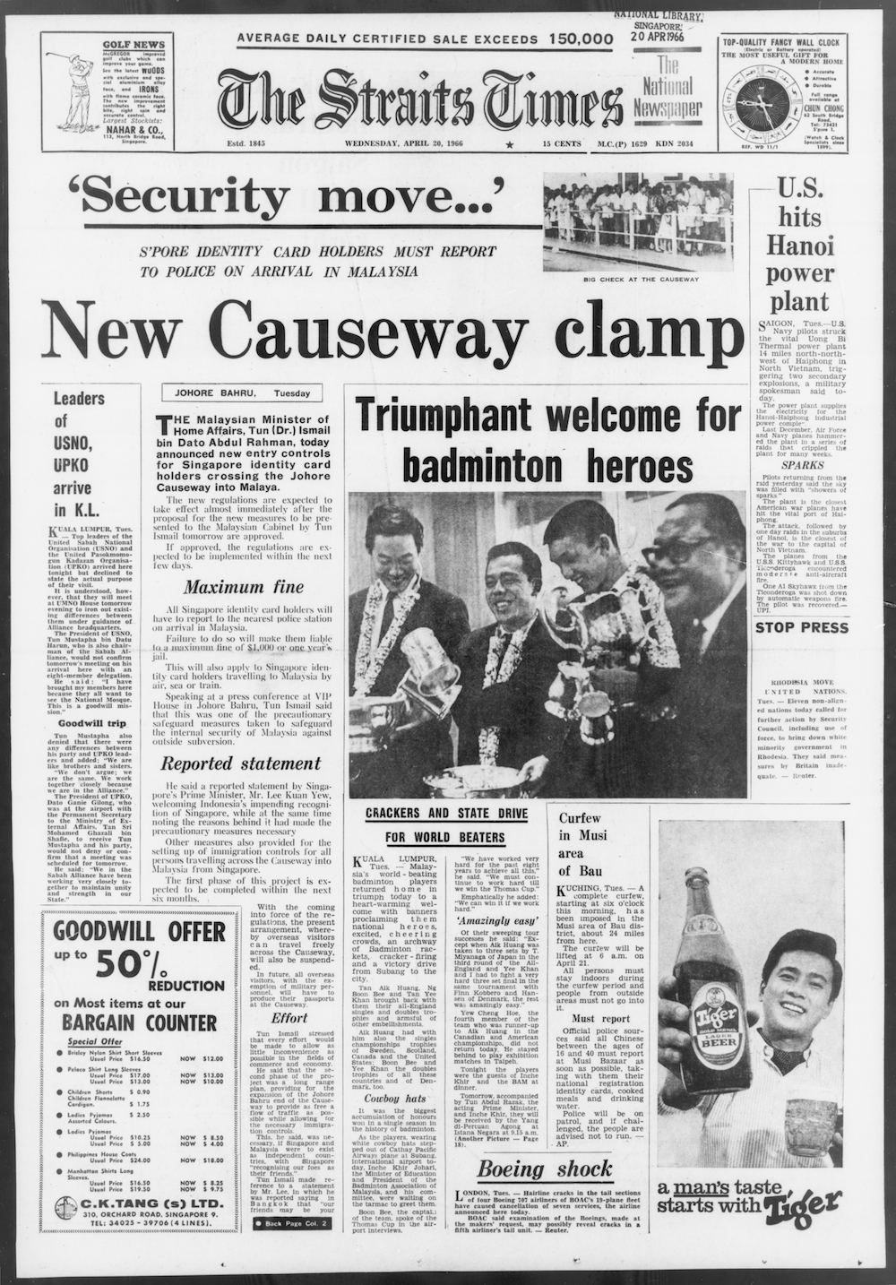 202. "New Causeway clamp". The Straits Times. 20 April 1966. p. 1.