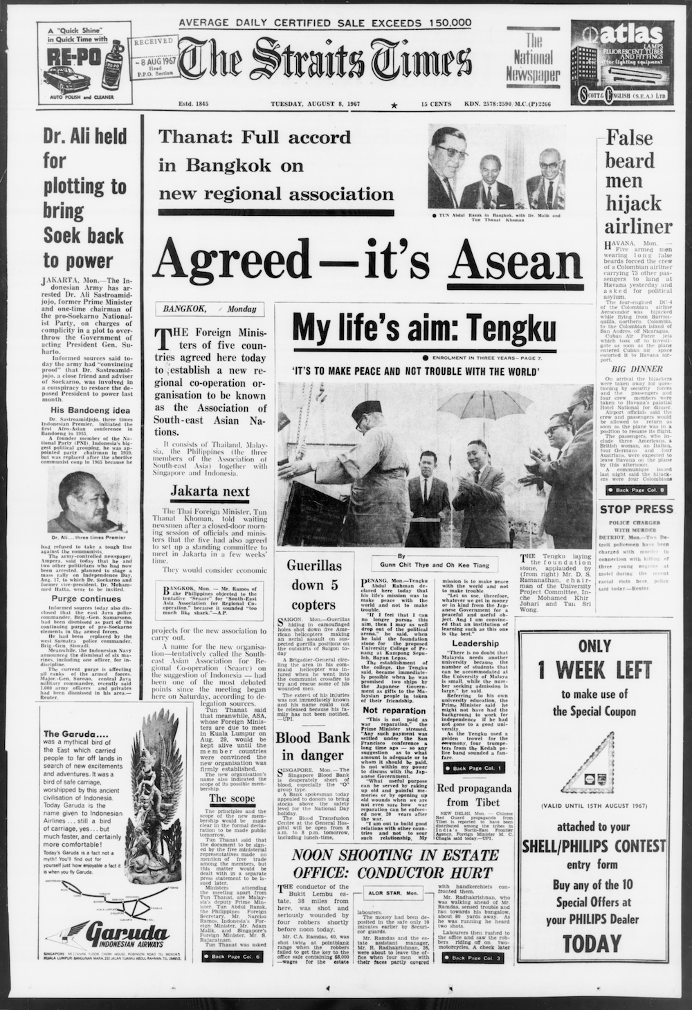 205. "Agreed – it's Asean". The Straits Times. 8 August 1967. p. 1. Retrieved 20 December 2025.
