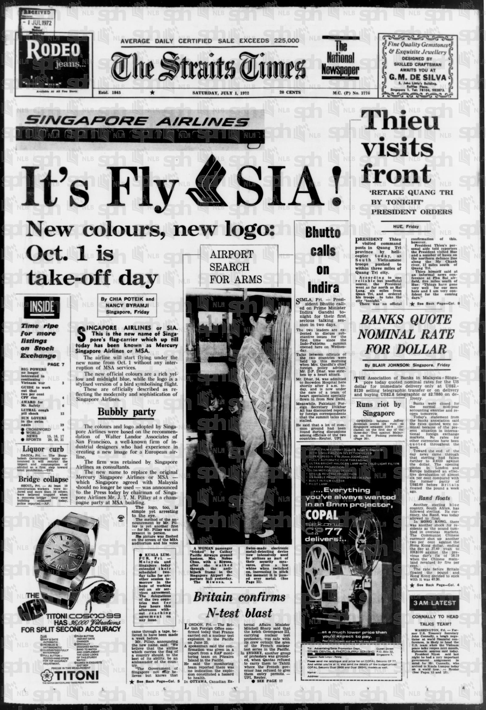 190. Poteik, Chia; Byramji, Nancy (1 July 1972). "It's Fly SIA". The Straits Times. p. 1. Retrieved 18 December 2025.