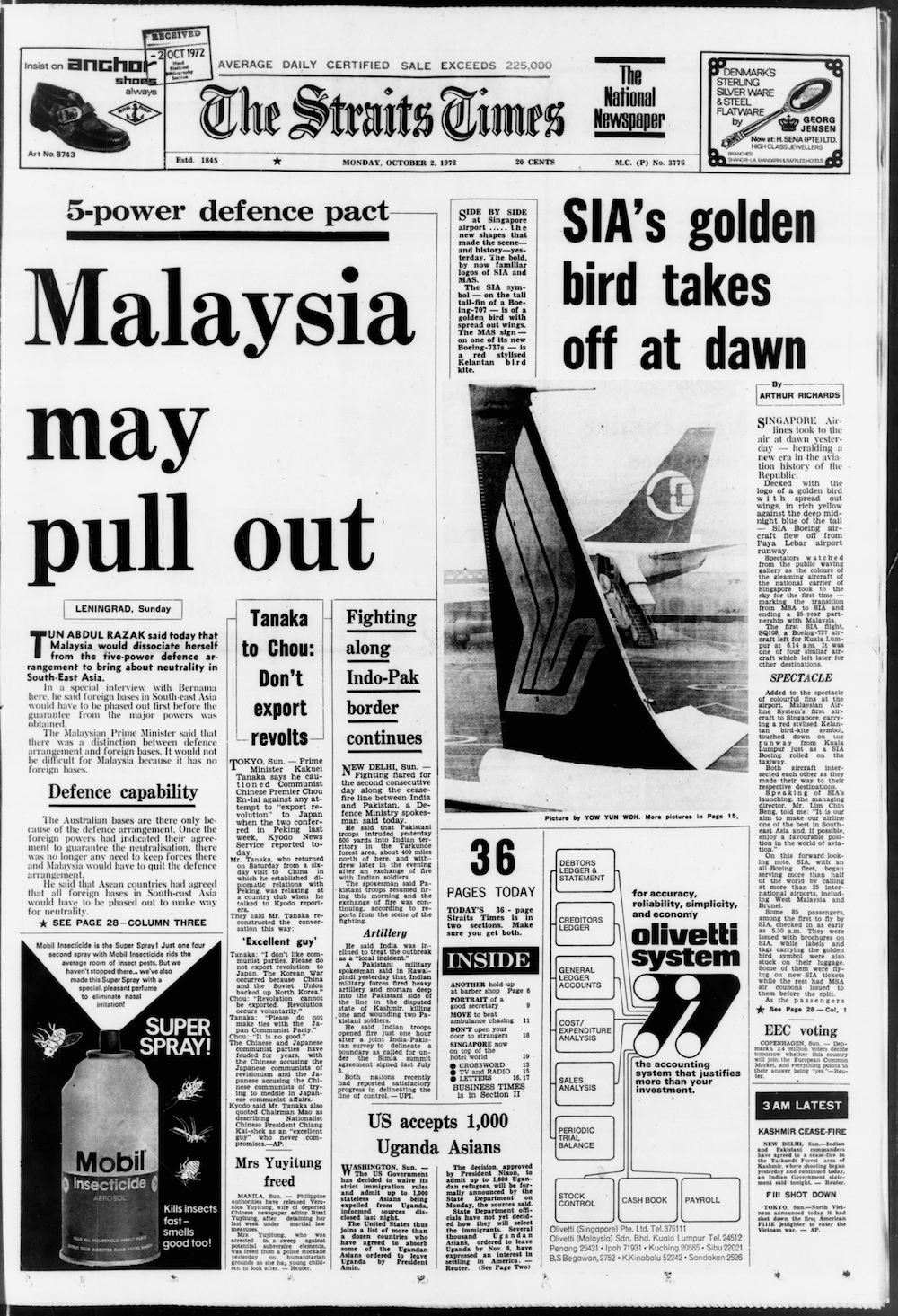 191. Richards, Arthur (2 October 1972). "Singapore's golden bird takes off at dawn". The Straits Times. p. 1. Retrieved 18 December 2025.